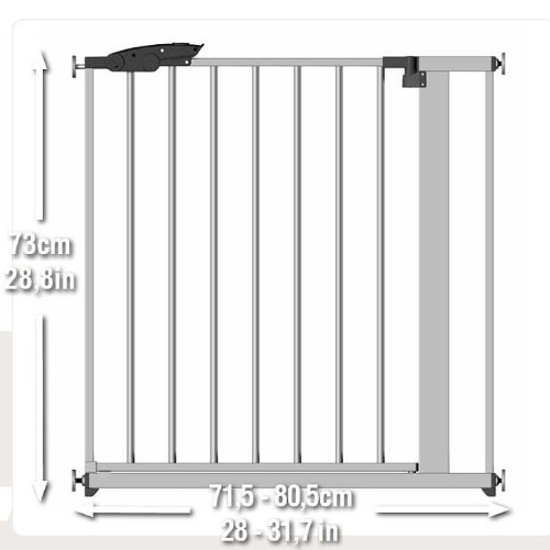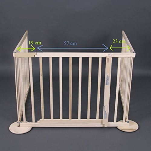 - Volumen de entrega: 1 elemento de puerta, 2 elementos barrera, 2 pies de soporte, revestido de caucho, 2 barrotes de conexión, 2 conexiones pared, 1 kit de material e instrucciones de montaje