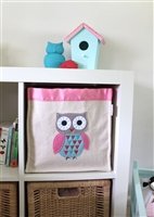 Caja de almacenaje de juguetes para habitación infantil. Estructura plegable con cartón rígido forrada en tela (70% algodón, 30% poliéster) con avión de fieltro en tonos morados y azules cosido al frente (100% poliéster). Es un complemento funcional a la vez que decorativo, perfecto para mantener organizado el espacio de juego. Diseñado para encajar en estanterías modulares. Combínalo con la caja "Coche", "Tren" o "Velero" para completar los cuatro medios de transporte. Dimensiones: Ancho 32 cm / Alto 32 cm / Fondo 32 cm. Diseñado y hecho en España con manos artesanas.