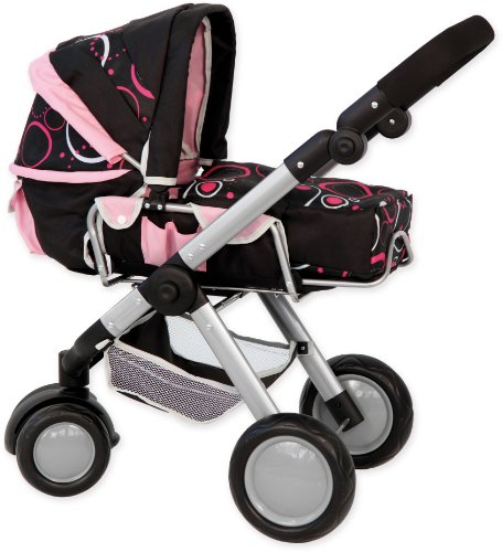Un buggy grande de tres ruedas de la moda-consciente mamás de muñecas. - Las niñas les encanta imitar a sus madres. El cochecito de niño es por lo tanto un juguete popular - al igual que con todos los ámbitos es la muñeca bebé aquí. Especialmente la linda