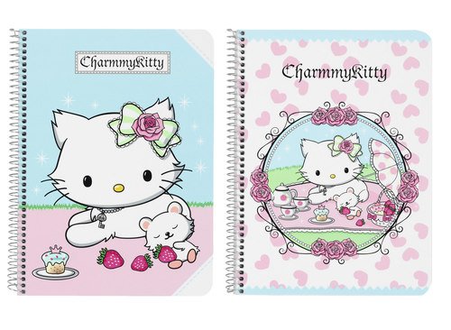 Excelente artículo licenciado de la marca CHARMMY KITTY. Se trata de una gata Persa de color blanca y con un lazo rosado atado en su oreja izquierda. Ella adora los brillantes, de ahí que lleve puesto siempre un pequeño collar del cual cuelga una llave de color plata que abre el joyero de Hello Kitty. Charmmy Kitty tiene un amigo llamado Azúcar, un Hamster color blanco quien es también mascota de Hello Kitty. Charmmy Kitty también tiene una hermana menor llamada Honey Cute quien usa dos lazos en cada oreja.. Incluye: 1x Libreta Tapas Duras. Presentación: Bolsa. Fabricación: Papel. Tamaño: 155 x 220 mm
