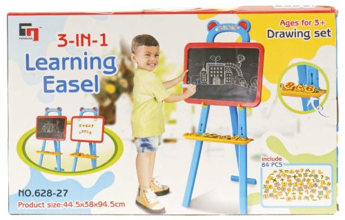 Pizarra mural 2 en 1reversible, por un lado pizarra blanca vileda y magnética, y por el otro pizarra de tiza, contiene 29 accesorios(letras magnéticas, tizas, borrador, y rotulador). Edad recomendada de 3-8 años.