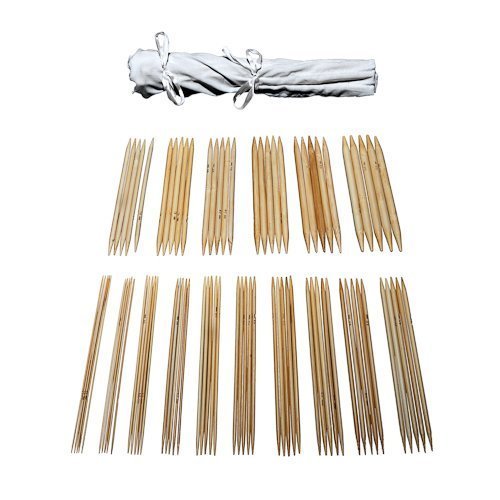 Set de 16 x 5 (80 unidades) AGUJAS DE TEJER DE BAMBÚ de 25cm (10 pulgadas) de doble punta por Curtzy TM (80 agujas de hacer punto)