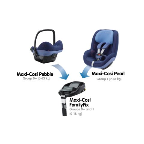 - Instalación con el FamilyFix, Easy Base 2 o el cinturón de seguridad de tres puntos estándar en el coche