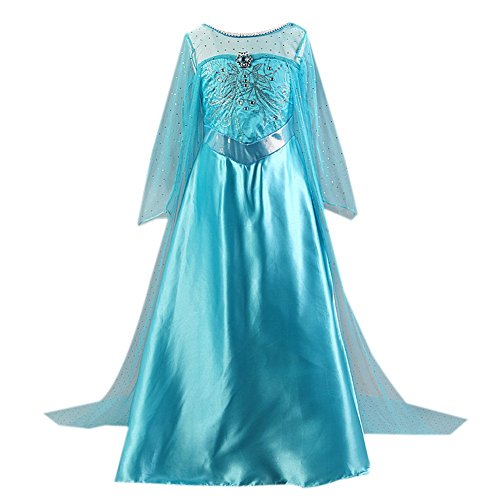 GenialES Disfraz Vestido Guantes Peluca Varitas Mágicas Tiara Diadema de Princesa Largo Lindo Regalo Cumpleaños Disfraz de Carnaval Fiesta Cosplay Boda Halloween para Niñas a Partir de 2 a 8 Años Talla130
