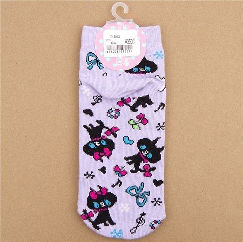 calcetines lila gatos negros