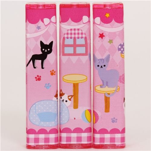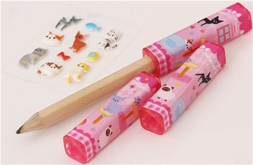- preciosos capuchones rosas para lápices y biros con gatos en la sala de estar, con pegatinas en 3D de gatos para poner en los capuchones