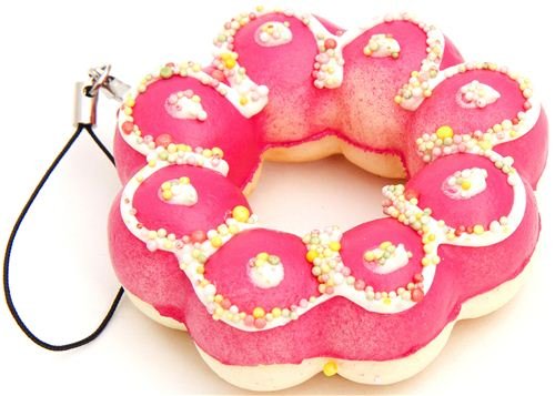 - con cobertura de azúcar rosa, salsa blanca y bolitas de colores por encima
