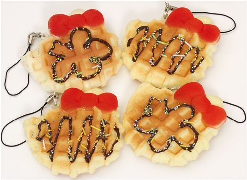 Colgante Squishy gofre de Hello Kitty con lazo rojo