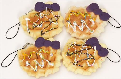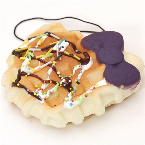 Colgante Squishy gofre morado de Hello Kitty con lazo