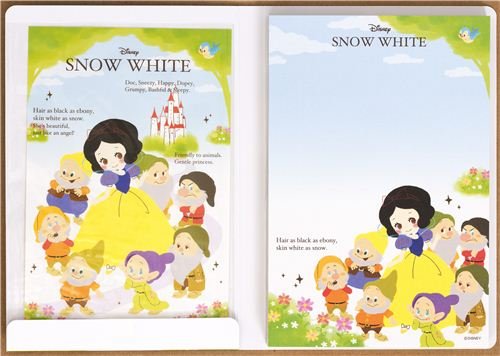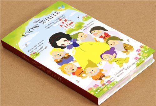 - bonito cuaderno con Blancanieves, los 7 enanitos y un castillo de cuento de hadas el cuaderno se puede abrir como un libro con postales
