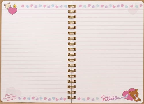Cuaderno kawaii de anillas con Rilakkuma y corazones
