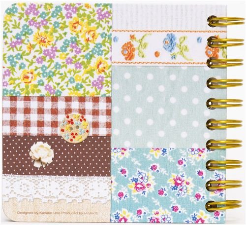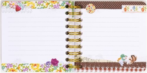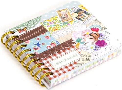- libreta graciosa que parece un colage con ardillas, sellos y dibujos florales