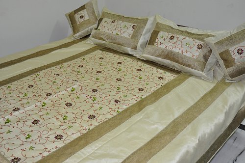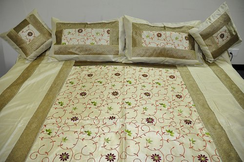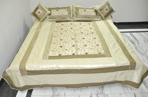 Doble Cama Banarsi Brocade y colcha de seda bordado de trabajo con Pillow & Cushion Covers Tamaño 105 x 88 pulgadas