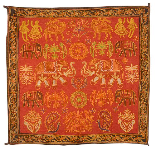 Elefante bordado tradicional tapiz colgante de pared de tabla tiro en tela de algodón Tamaño 34 x 34 pulgadas