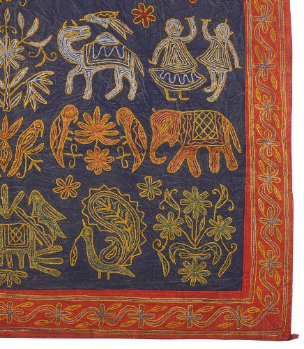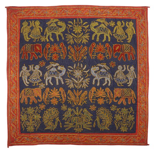 Elephant algodón bordado decorativo de pared Tapiz colgante Tamaño 34 x 34 pulgadas