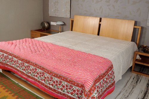 Hecho a mano Tamaño Doble Jaipuri Reversible indio Boho algodón acolchado con Tamaño de Impresión Hand bloque 108 X 90 pulgadas