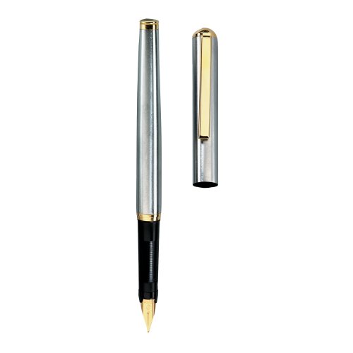 Pluma; metal; oro platted accesorios, de acero inoxidable chapado en oro M-semilla; Con el punto sintético; 1 cartucho de tinta estándar azul incluida en blistercard