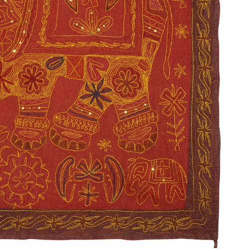 Indio del bordado tradicional a mano Zari y Trabajo lentejuelas Elephant Wall Hanging Algodón Tamaño 36 x 36 pulgadas