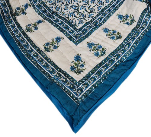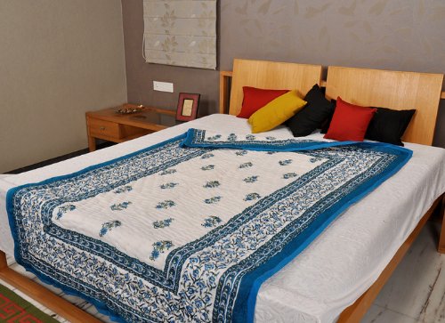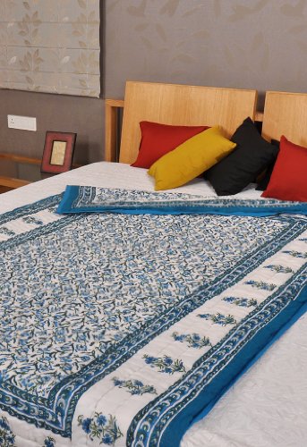 Imagen 1 de Inicio decorativo Tamaño Cama doble Jaipuri Reversible Quilt a mano con tamaño de impresión bloque 108 X 90 pulgadas