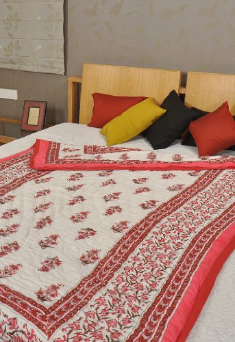Imagen 1 de Inicio decorativo Tamaño Cama doble Jaipuri Reversible Quilt a mano con tamaño de impresión bloque 108 X 90 pulgadas