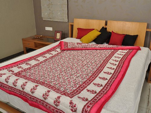 Inicio decorativo Tamaño Cama doble Jaipuri Reversible Quilt a mano con tamaño de impresión bloque 108 X 90 pulgadas