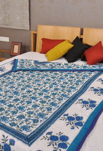 Imagen 1 de Inicio decorativo Tamaño Cama doble Jaipuri Reversible Quilt a mano con tamaño de impresión bloque 108 X 90 pulgadas