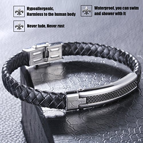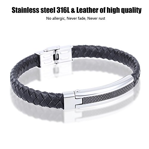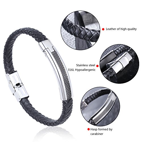LDUDU® Pulsera hombre cuero trenzada de acero inoxidable antialérgico Brazalete de hombre trenzada color Plateado y negro - regalo para San valentin Cumpleaños