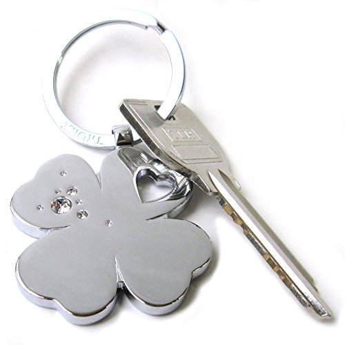 Llavero trébol de 4 hojas, metal fundido, cromado brillante, made with SWAROVSKI