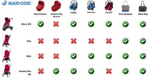 - Sistema de viaje ideal combinada con matching Maxi -Cosi asientos de seguridad infantil y Mura capazo ( adaptadores incluidos)