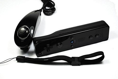 Remoto y Nunchuk controlador combo-Incluye manga de silicona y correa de muñeca Para Nintendo Wii (Negro)