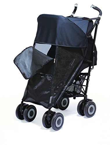 - Malla con UPF 3 que proteger de los reflejos, los insectos y el viento, y además filtra los rayos UV en la mitad inferior del carrito.