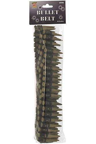 - Incluye Cinturón de balas, dorado, 96 balas, 150 cm largo