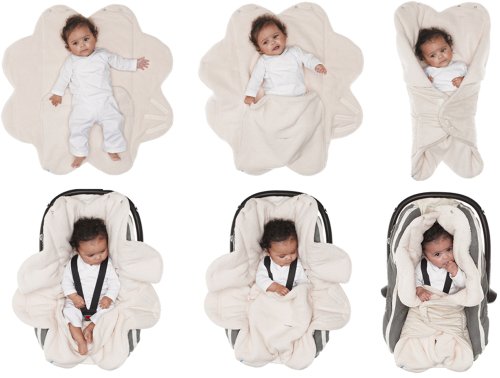 This stunning wrapper is made from beautiful faux suede and soft fleece lining. Ideal for sheltering your precious baby against the ravages of cold and windy winters, or guarding against the chill of those early summer mornings and deceptively cool evenings. The fleece lining means that it is super soft to the touch and unbelievably snuggly. It will also help protect your car seat against the inevitable spills and accidents.As it is a versatile petal shape, with a pocket to securely pop your baby in, it can also double as a playmat when you are at home or out and about.Suitable for most 3 and 5 point harnesses and for use up to approximately 18 months, it is perfect for at home in a rocking chair or playpen, and on the road, in a carry cot or baby car seat. There is also an option to create a hood to keep your little one?s head warm. Its innovative design means that it can simply be undone and opened up for easy temperature control.This wrapper doesn?t just look good and feel super soft to the touch, it also ticks all the boxes for practicality being very simple to use and machine washable.Available in seven stunning colours; black, chocolate, lime, red, pink, blue and ecru. Why not team it with a coordinating changing bag from the Wallaboo range?