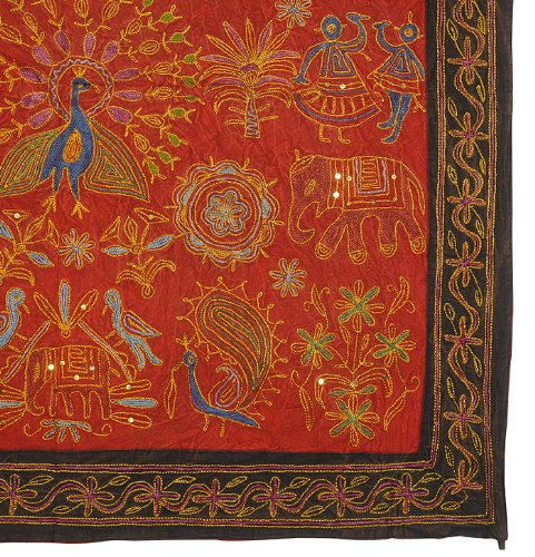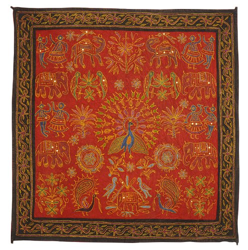 Zari bordado y lentejuelas trabajadas pared tradicional de algodón indio colgante-Mesa-Tapestry Tamaño banda 36 x 36 pulgadas
